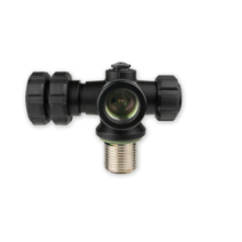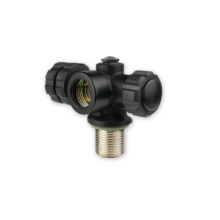 Only 1 first stage can be connected. Equipped with “Full-Metal-Core-Rubber Knobs” (for maximum grip) and safety burst disc, releasing at 300 bar.