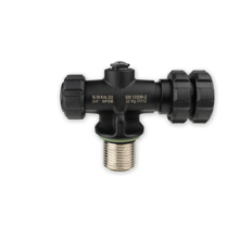 Tank valve specifically designed for sidemount diving. Tank neck thread is 3/4“ NPSM (US-Standard). Nautec SLS-L and SLS-R valves are standard shut off devices in accordance with DIN EN 12209-2 (G 5/8“), for an operating pressure of 232 bar. Depending on the model, the shut-off mechanism is arranged either 90° to the left or 90° to the right of the regulator connection. On the opposite side of the knob there is a about 35 mm valve body extension put into place. This prevents the bungee loop from slipping off.