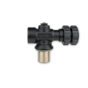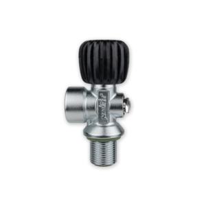For mono scuba equipment – especially rebreathers – (all tank diameters) with tank neck thread according to US-Standard ¾“ NPSM. Nautec SLS valves are standard shut off devices in accordance to DIN EN 12209 (Pipe G 5/8“), for an max. operating pressure of 232 bar with horizontally arranged shut-off mechanism and outlet. Only 1 first stage can be connected. Equipped with “Full-Metal-Core-Rubber Knobs” (for maximum grip) and safety burst disc, releasing at 300 bar.