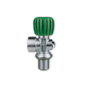 For mono scuba equipment – especially rebreathers – (all tank diameters) with tank neck thread according to US-Standard ¾“ NPSM. Nautec SLS valves are standard shut off devices in accordance to DIN EN 12209 (Pipe G 5/8“), for an max. operating pressure of 232 bar with horizontally arranged shut-off mechanism and outlet. Only 1 first stage can be connected. Equipped with “Full-Metal-Core-Rubber Knobs” (for maximum grip) and safety burst disc, releasing at 300 bar.