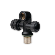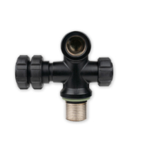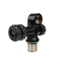 Tank valve specifically designed for sidemount diving. Tank neck thread is 3/4“ NPSM (US-Standard). Nautec IC Sidemount valves are standard shut off devices in accordance with DIN EN 12209-2 (G 5/8″), for an operating pressure of 232 bar with vertical arranged shut-off mechanism and outlet. Only 1 first stage can be connected. Special design for regulator’s first stage with a yoke connection. Equipped with a „Full-Metal-Core-Double-Wheel-Rubber-Knob“ and safety burst disc, releasing at 300 bar.