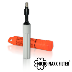 Cold water diving can cause “internal icing” in breathing air. The effect intensifies with minor increases of the percentage of water vapour in the breathing mixture. The first system point to be affected is the water protection or dip tube. This is the first point of “air relaxation”. With the right conditions, steel cylinders will rust and aluminum cylinders will oxidize. Micro particles can lead to air contamination and affect the diver physiologically and compromise equipment integrity. The Nautec filter element is made from a hydrophobic PE plastic, the material is a poor conductor of heat and physiologically harmless. Further, it is temperature resistant, impact resistant and chemically neutral. By filtering out the smallest particles in the range of 3 to 5 thousandths of a millimetre (3-5 μ) and being impermeable to water, your personal safety against icing is ensured. The MicroMaxx Filter is intended to replace the conventional plastic or brass water protection or dip tube.